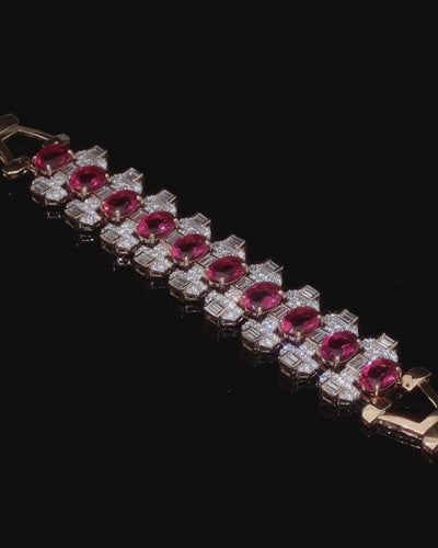 Studs of fiery red diamonds gracefully placed on a veil of white diamonds